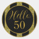Pegatina Redonda Cumpleaños 50 Negro Dorado Brillante Rayas