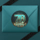 Pegatina Redonda Cumpleaños 70 Lujoso Vidrio Teñido de Turquesa y D