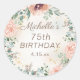 Pegatina Redonda Cumpleaños 75 Elegante Floral Acuarela Rosa