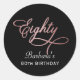 Pegatina Redonda Cumpleaños 80 Script Rosa Dorado
