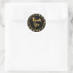 Pegatina de agradecimiento tematizada con estrellas modernas en negro y dorado personalizada con tu texto personalizado y un agradecimiento escrito a mano con un pincel. Utilízalas como sellos de sobre o como pegatinas de favor de fiesta. CAMBIOS: Puedes cambiar el color del fondo o el estilo de letra, tamaño, color o ubicación haciendo clic en PERSONALIZAR MÁS. Contacta con el diseñador a través de Zazzle Chat o makeitaboutyoustore@gmail.com si deseas que se modifique este diseño, en otro producto o deseas artículos coordinados.