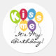 Globos coloridos y diseño de cumpleaños de texto negro que dice "¡Bésame es mi cumpleaños!" en tarjetas de cumpleaños, tazas, camisetas y otras prendas de vestir y artículos de regalo.