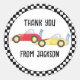 Pegatina Redonda Cumpleaños Boy Simple Race Car Whimsical Gracias