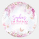Pegatina Redonda Cumpleaños caprichoso de flor de wisteria mariposa