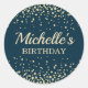 Pegatina Redonda Cumpleaños con Brillo Dorado Azul Marino Moderno