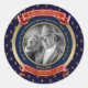 Celebre su cumpleaños con esta elegante placa conmemorativa de porcelana. Las sencillas bandas doradas y las pancartas rojas con borde dorado sobre un fondo azul marino con patrón de flor de lis crean el marco perfecto para su fotografía favorita. Reemplace la foto y el texto de muestra con los suyos para un regalo único. Es un regalo maravilloso para cumpleaños importantes, eventos conmemorativos, aniversarios de boda, graduaciones, jubilaciones, ascensos, logros académicos/culturales y otras ocasiones especiales.