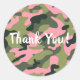Pegatina Redonda Cumpleaños de Camuflaje Rosa Verde Ejército Camufl