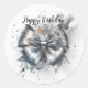 Pegatina Redonda Cumpleaños de Coquette Bow Plateada Metálica