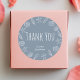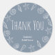 Expresa gratitud al estilo costero con el Sticker Redondo Clásico de Agradecimiento para Despedida de Soltera con Conchas y Estrellas de Mar. Con un fondo azul polvoriento, este elegante sticker muestra "Gracias" en letras blancas crujientes en el centro. Abajo, hay un espacio personalizable para el nombre de la novia y "Despedida de Soltera", lo que lo convierte en un toque final perfecto para las bolsas de favores, regalos o decoraciones de la fiesta. Alrededor del texto hay delicadas ilustraciones blancas de conchas y estrellas de mar, creando un encantador estilo de costa. Perfecto para una despedida de soltera con tema de playa o costero, este sticker es elegante y personal.