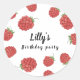 Pegatina de cumpleaños de frambuesa con frambuesas rosas lindas, ideal para una fiesta de cumpleaños de verano de frutas rosas para tu niñita.