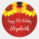 Pegatina Redonda Cumpleaños de la Madera Rústica del Girasol