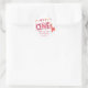 Fiesta de cumpleaños de Dinosaur chica Gracias Pegatina. El diseño presenta la escritura tipográfica ''one'' en la escritura a la moda, dinosaurio y mensaje de agradecimiento ''gracias por pisotear''. Personaliza con un nombre.