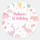Pegatina Redonda Cumpleaños de los Dinosaurios del Boho Rosado
