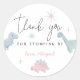 La fiesta de cumpleaños del chica dulce favorece al pegatina que presenta ilustracion de dinosaurios con estrellas. El texto dice "gracias por pisotear".