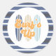 Pegatina Redonda Cumpleaños de Surf's Up Surfboard Beach