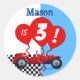 ¡Crea tus propios pegatinas! Auto rojo con bandera azul claro y a cuadros. ¡Fácil de personalizar!