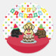 Pegatina Redonda Cumpleaños de tres Personalizados de Cachorros de
