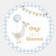 Esta es nuestra divertida pegatina redonda clásica "Un ganso tonto" de cumpleaños, con un diseño de gingham azul y un alegre tema de ganso, perfecta para sellar sobres, decorar favores de fiesta o añadir un toque dulce a la celebración del primer cumpleaños de tu pequeño.