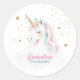 Pegatina Redonda Cumpleaños de Unicornio, Pastel Unicornio, Arcoiri