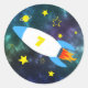 Pegatina Redonda cumpleaños del espacio Rocket Star