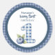 Pegatina Redonda Cumpleaños del niño con arándeles azul primero