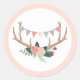 Pegatina Redonda Cumpleaños del Rosa Antlers y del Fiesta Bunting C