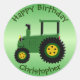 Pegatina Redonda Cumpleaños del Tractor Verde Personalizado