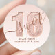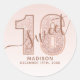 Pegatina Redonda Clásica Cumpleaños Dulce 16 Escritura Brillo Oro Rosa. Este diseño de moda está acentuado con brillo de oro rosa sobre un fondo degradado rosa claro. Personaliza este diseño personalizado con tus propios detalles.