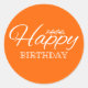 Feliz cumpleaños - simple tipografía en neón naranja (ff6600) de fondo . Color intenso y llamativo que recuerda a los años 80 Este color brillante ciertamente hará que alguien se anime en un día especial. Puedes personalizar este pegatina redondo con tus propias palabras