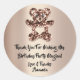 Pegatina Redonda Cumpleaños Favor Brown Heart Spark Purpurina Bear