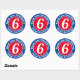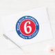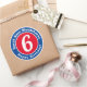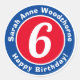 Pegatinas de cumpleaños de niños. Feliz pegatina de cumpleaños, que está decorado con el nombre del destinatario, el mensaje "Feliz cumpleaños" y la edad del niño - 6 años.