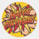 Pegatina Redonda CUMPLEAÑOS FELIZ Diversión Retro Cómic