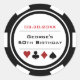 Pegatina Redonda Cumpleaños Ficha de Casino Poker Blanco Negro