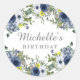 Pegatina Redonda Cumpleaños Floral Acuarela Amarillo Azul Marino