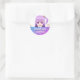 Pegatina de cumpleaños con un chica de anime, al estilo kawaii japonés. azul rosado bonito. Personaliza y agrega tu nombre. Con el texto: Gracias.