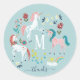 Pegatina Redonda Cumpleaños mágico de niñas lindas azul unicornio m