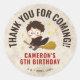 Envía a tus invitados a casa con un toque de magia con estas encantadoras etiquetas personalizadas para el cumpleaños de Harry Potter. Cada etiqueta redonda presenta una adorable ilustración estilo chibi de Harry Potter volando en su escoba, rodeada de acentos brillantes. El fondo rústico con aspecto de pergamino envejecido añade un auténtico toque del Mundo Mágico, mientras que el mensaje "¡GRACIAS POR VENIR!" expresa tu gratitud. Personaliza fácilmente estas etiquetas con el nombre y la edad de tu hijo, lo que las convierte en un adorno único y memorable para las bolsas de fiesta, cajas de dulces o pequeños regalos. Perfectas para cualquier celebración de cumpleaños con temática de Harry Potter, estas etiquetas son la forma ideal de agregar un toque personalizado y mágico a tus detalles de fiesta.
