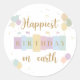 Pegatina Redonda Cumpleaños Más Feliz En La Tierra Cumpleaños Mágic