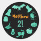 Pegatina Redonda cumpleaños negro verde de Halloween