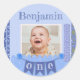 Pegatina Redonda Cumpleaños niño 1 año Scrapbook azul
