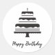 Pegatina Redonda Cumpleaños | Pastel De Tres Capas Negro Y Blanco