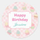 Pegatina Redonda Cumpleaños personalizado del pastel rosa de Gingha