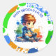 Pegatina Redonda Cumpleaños personalizado para niños que juegan vid