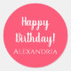 Pegatina Redonda Cumpleaños Personalizado Rosa Feliz Cumpleaños