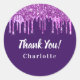 Para una fiesta de cumpleaños glamurosa y femenina. Un fondo violeta profundo con un purpurina falso morado y rosa gotea. Personalice y agregue un nombre. Con el texto: ¡Gracias!
