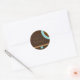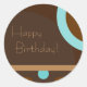 Un diseño retro con un fondo marrón con una raya tostada, círculos azul claro y marrón.