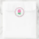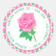 Pegatinas redondos con imágenes de hermosas rosas rosas. El fondo, la imagen y el texto se pueden personalizar. Obra de arte original de W.B.