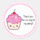 Gracias por venir a mi fiesta. Este divertido pegatina cuenta con un ilustracion adorable de un quequito feliz con la glaseada rosa, rociadores y una cereza sonriente encima. Compruebe todos los productos que coinciden en la tienda Super Cute Kawaii.