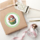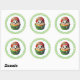 Round sticker is shown with a cute cupcake birthday sports soccer/basketball print.