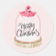 Pegatina Redonda Cúpula de vidrio rosado de Feliz Navidad